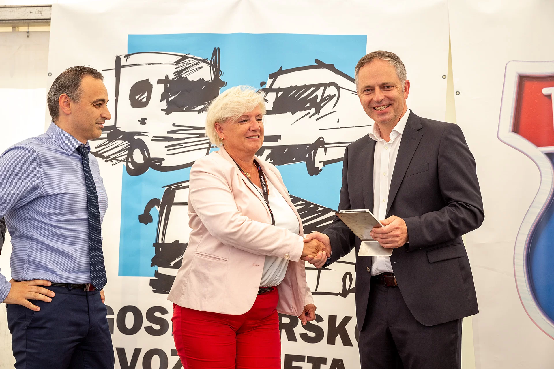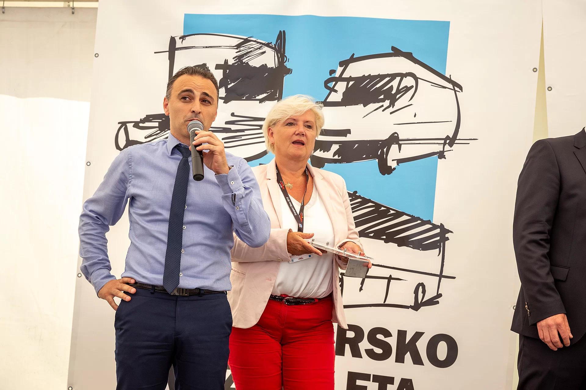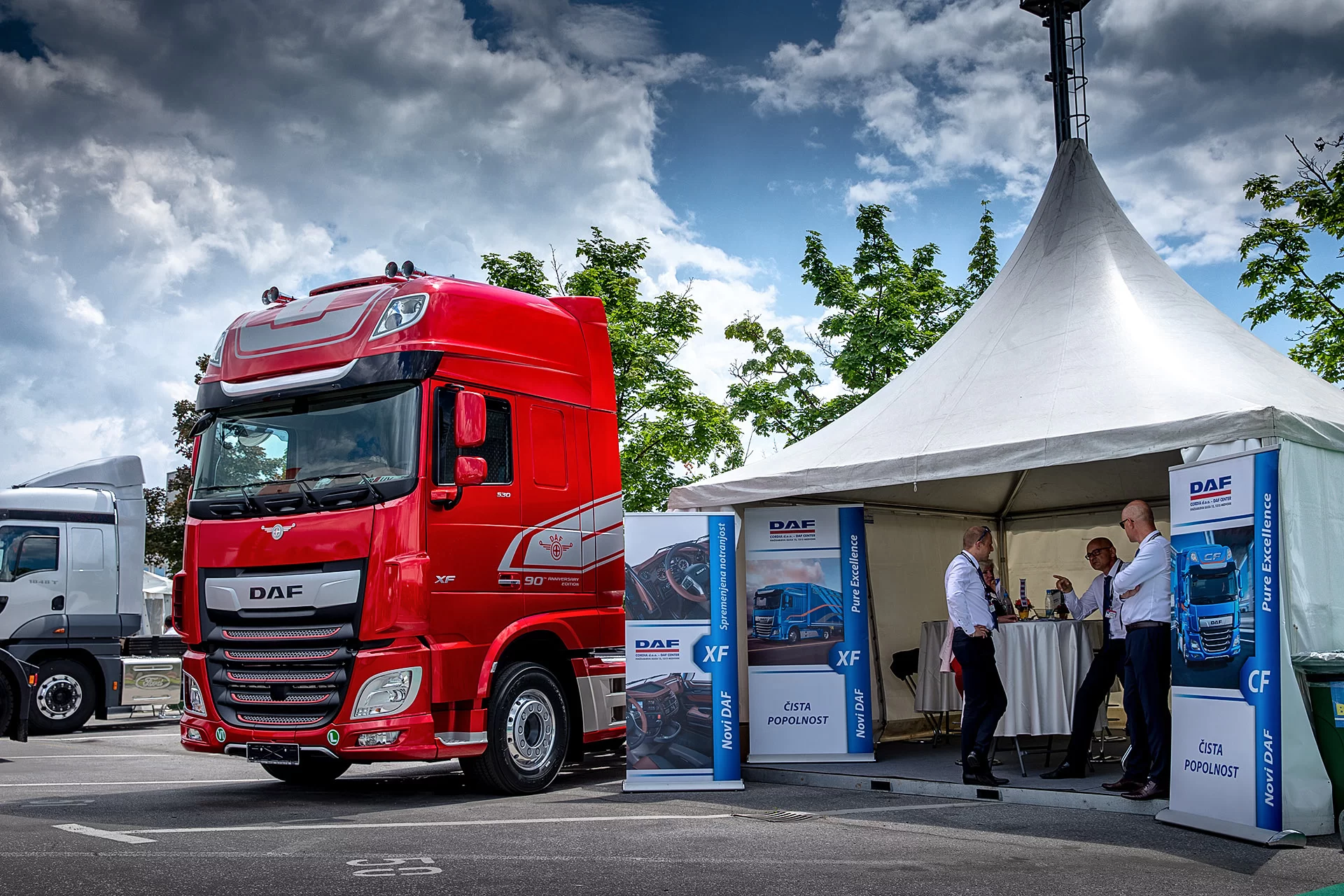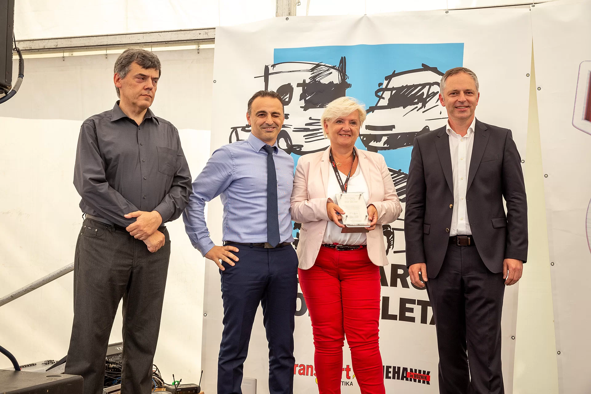 Novo priznanje DAF- ovi odličnosti Nagrado za tovornjak leta sta prevzela Majda Bitenc Menart, direktorica podjetja CORDIA d.o.o. in Atila Kaya, področni vodja za DAF Trucks N. V.